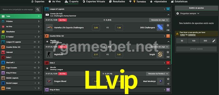 A aposta LLvip oferece aos jogadores a experiência mais conveniente de apostas em eSports!